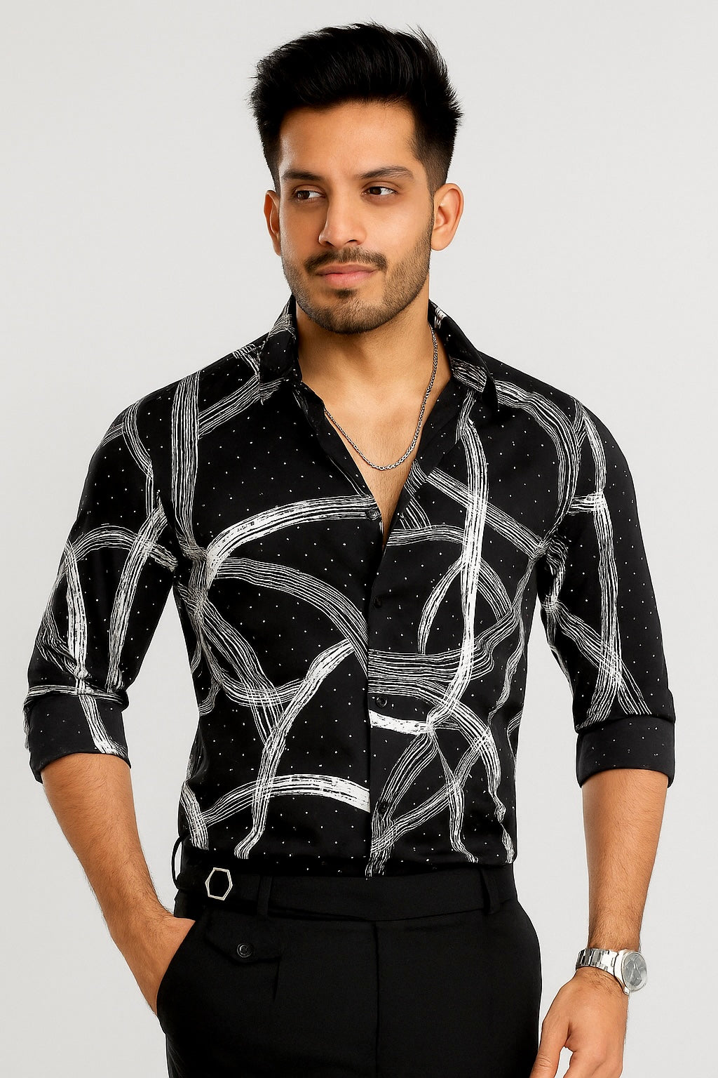 Step into statement style with the Printed Luxe Shirt, crafted from soft, fluid viscose that drapes with ease and moves with you. Designed for men who embrace individuality, this shirt blends modern prints with subtle stone accents.