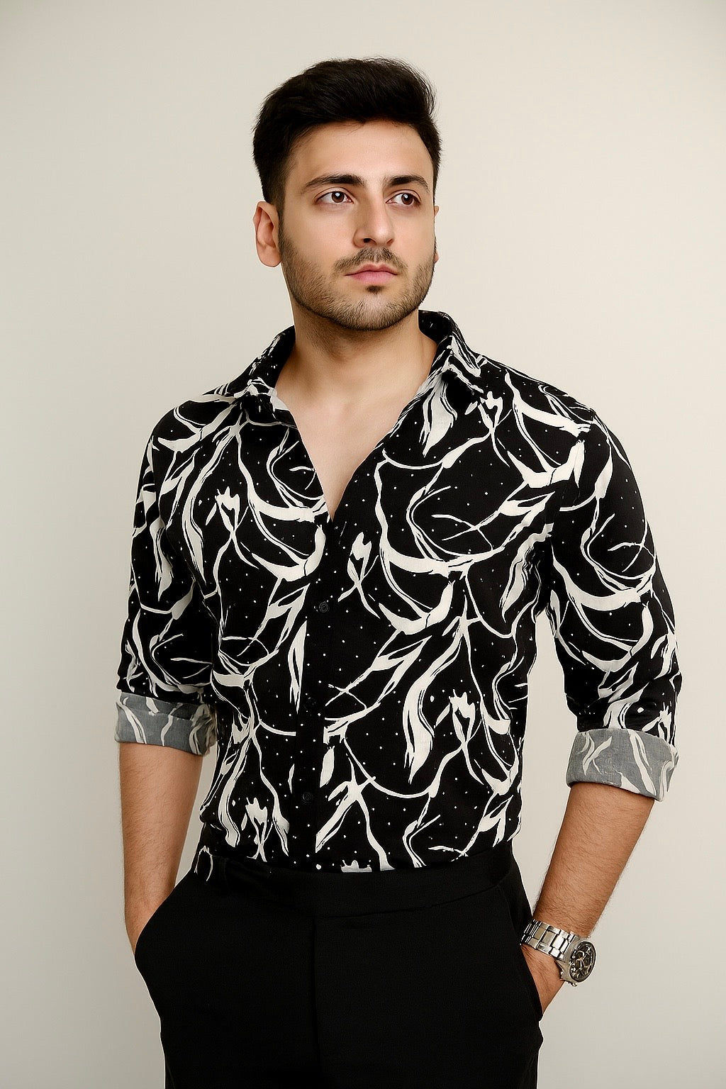 Step into statement style with the Printed Luxe Shirt, crafted from soft, fluid viscose that drapes with ease and moves with you. Designed for men who embrace individuality, this shirt blends modern prints with subtle stone accents.