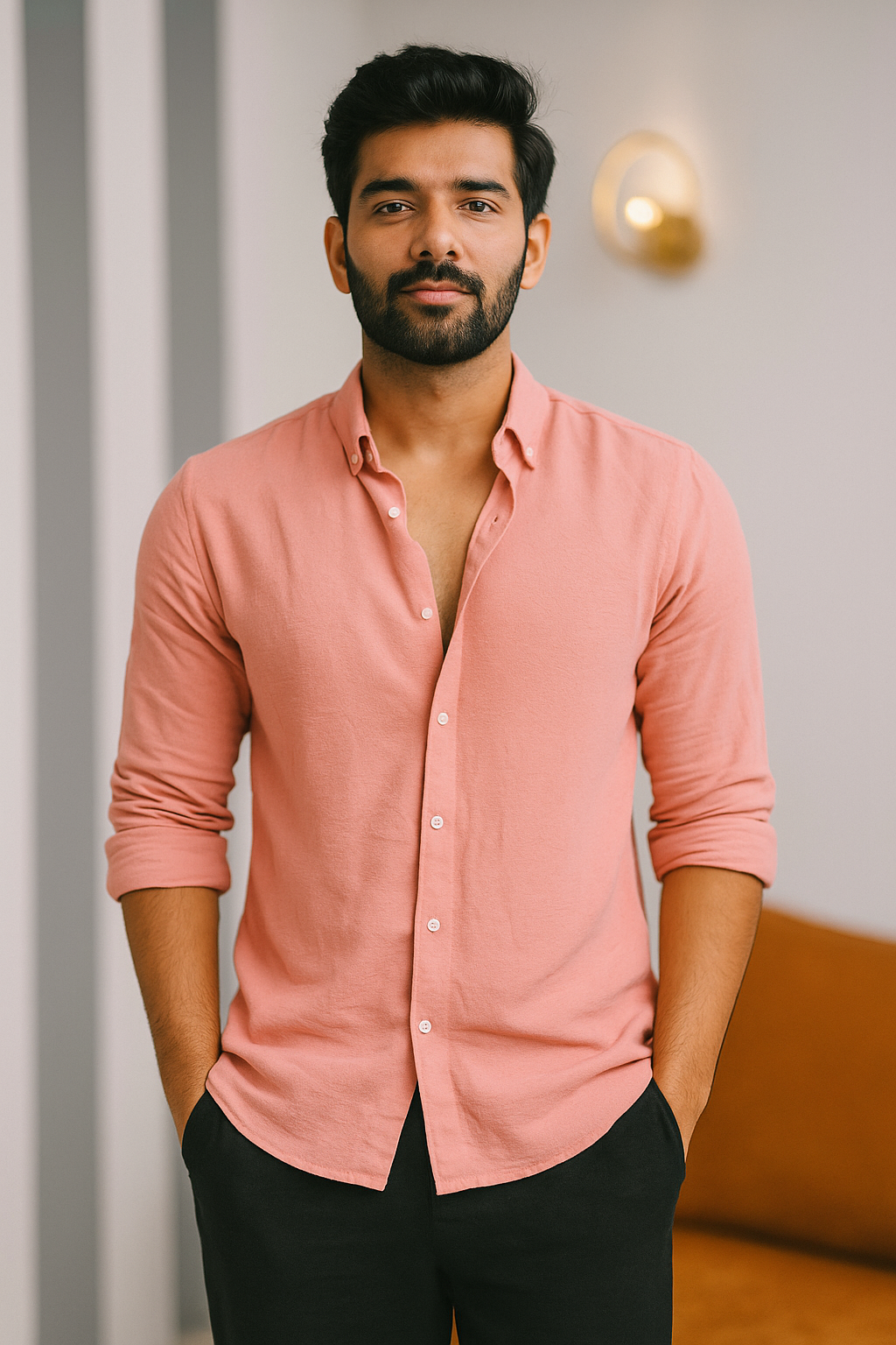 Redefine effortless elegance with our Solid Imp Shirt, crafted from lightweight imported material that delivers unmatched breathability and comfort. This shirt brings modern refinement to every occasion — from laid-back days to elevated evenings.