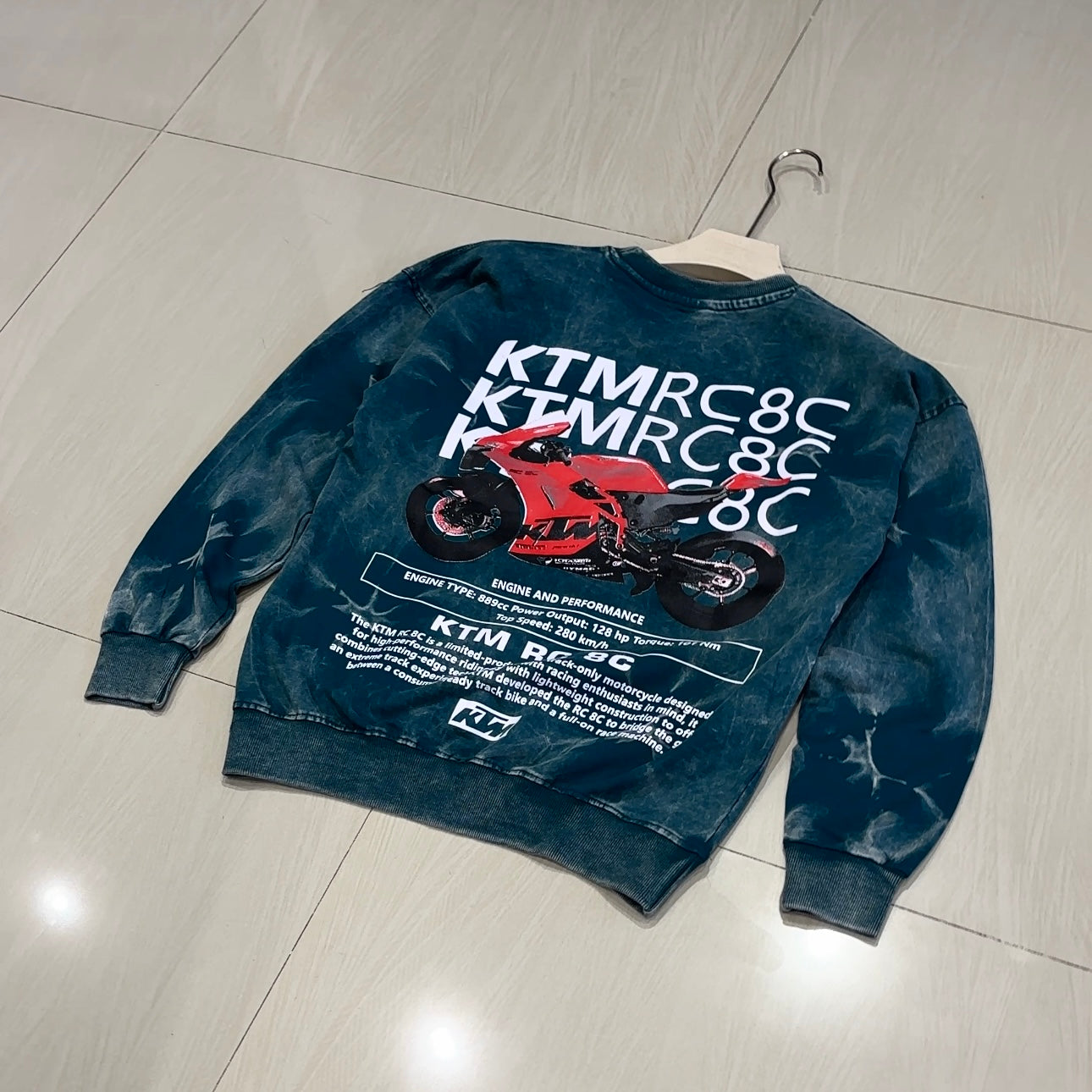 Street-ready and effortlessly cool. Premium cotton loop knit, oversized fit, acid wash finish with minimal front print and bold motorbike graphic at the back. Comfort meets edge.