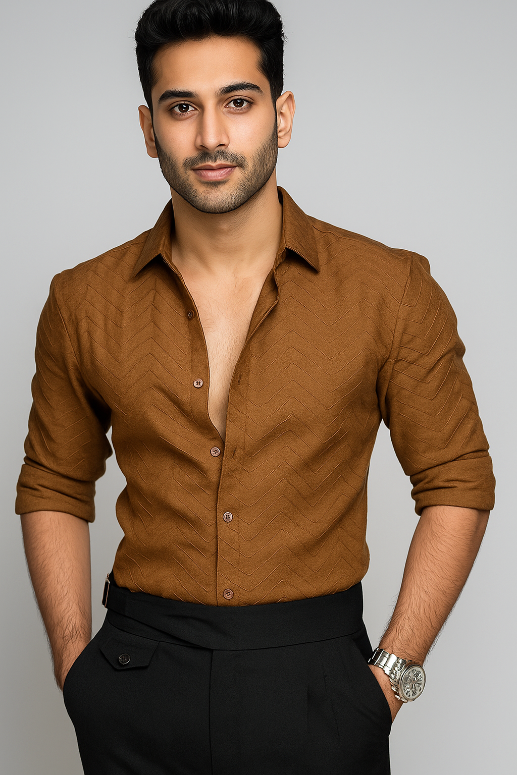 Step into effortless sophistication with our premium textured shirt, crafted from high-quality fabric that offers both style and comfort. Designed with a subtle self-pattern, this shirt adds depth and refinement to your wardrobe without being loud.